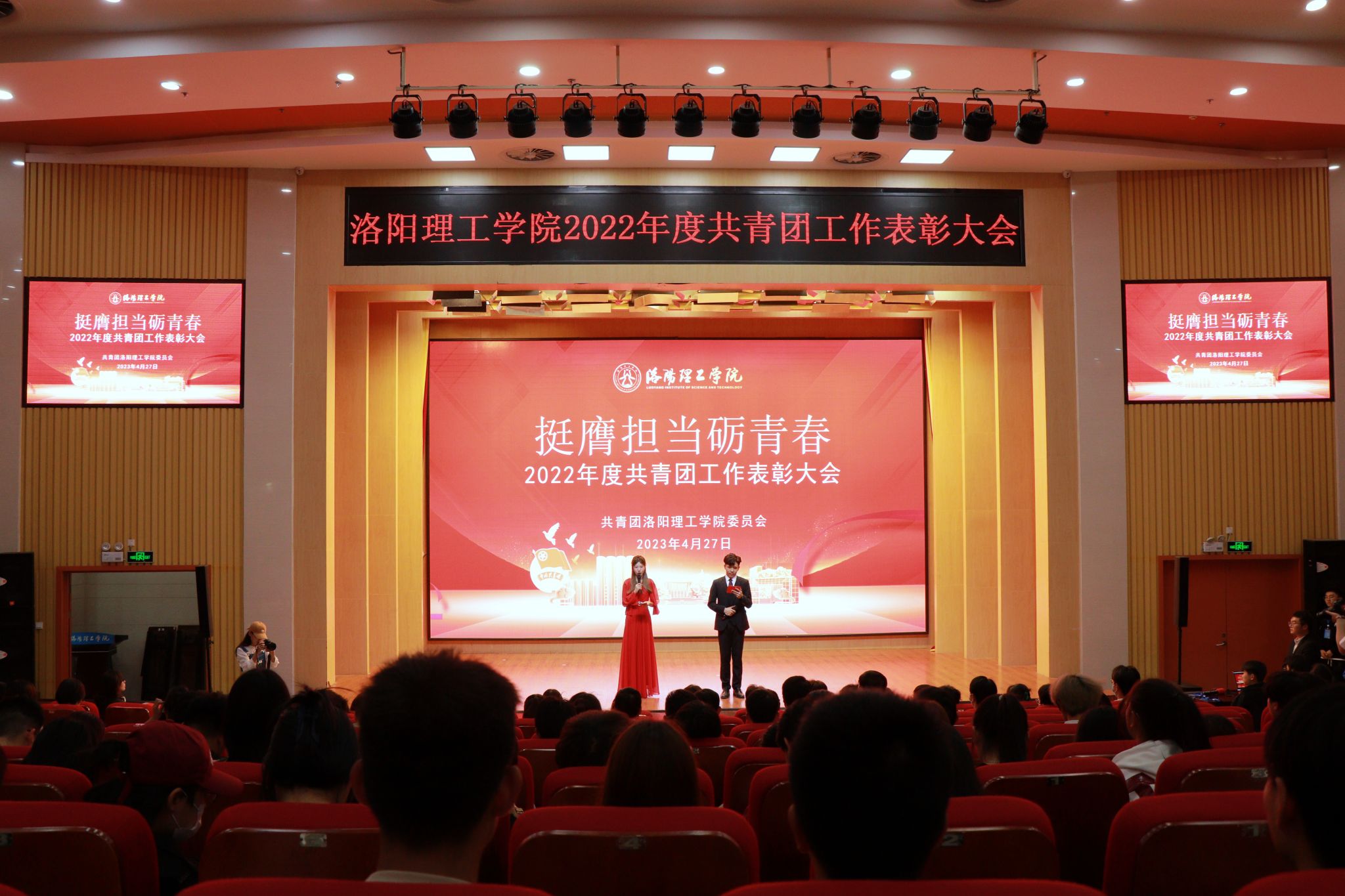 为深入学习贯彻落实党的二十大精神,纪念“五四运动”104周年,弘扬“爱国、进步、民主、科学”的五四精神,4月27日下午,以“挺膺担当 砺青春”为主题的优米直播app体育2022年共青团工作表彰大会在王城校区图书信息中心报告厅举行。校党委副书记胡恩立出席大会,党委宣传部、学生处、校团委、大学科技园管委会等部门负责人及各二级学院党委副书记、团委书记、团员青年共600余人参加了大会。