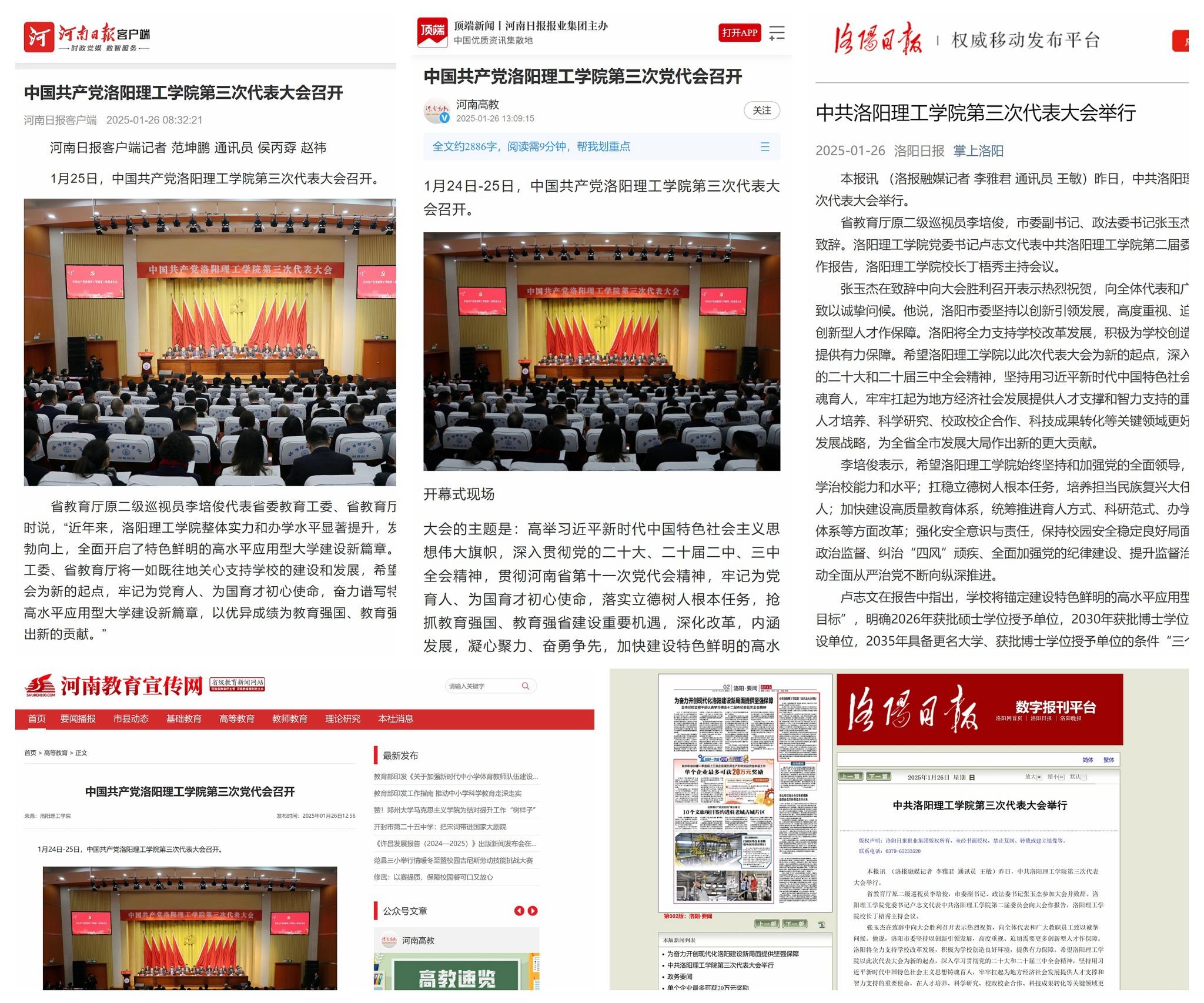 中国共产党优米直播app体育第三次代表大会胜利召开,引起了媒体关注和报道。《河南日报》、顶端新闻、河南教育宣传网、河南高教、《洛阳日报》、掌上洛阳等多家媒体纷纷对大会进行了报道。