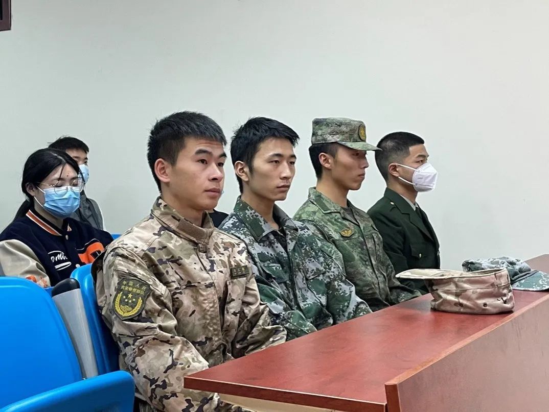 四位退役学生分享了当兵的初衷,回顾了难忘的军营生活,表示当兵从不后悔,激发同学们入伍决心,号召大家走入军营,保家卫国。潘奎元说当兵两年,变得更自律了,学会了思考,爱上了读书,成为了更好的自己;郭川都讲述了新兵连的“魔鬼”经历,告诉同学们了要练就真本领才能站稳脚跟;王振锋提到自己因为从军经历变得更成熟、更稳重,集体荣誉感和团队意识更强了,还骄傲地向分享了自己曾到某地参加军事演习的真实经历;王啸然从入伍的国家政策、福利待遇、经济补偿等当面为大家做了清晰地讲解。