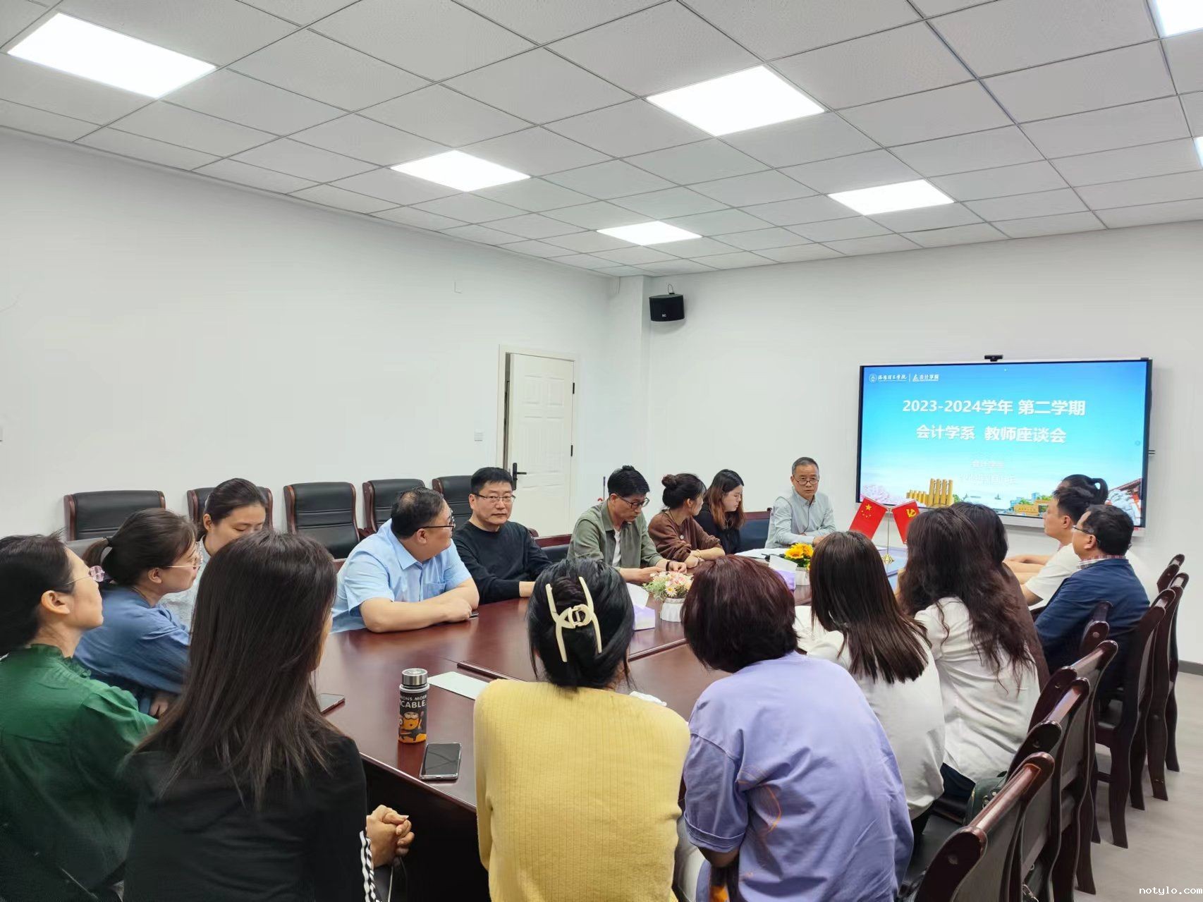 4月18日,优米直播app体育会计学院会计学系在教学D楼行政会议室召开2023-2024学年第二学期教师座谈会。学院院长马腾、副院长吕玉辉出席会议并讲话,会计学系19名全体教师参加会议,座谈会由会计学系系主任张莉主持。