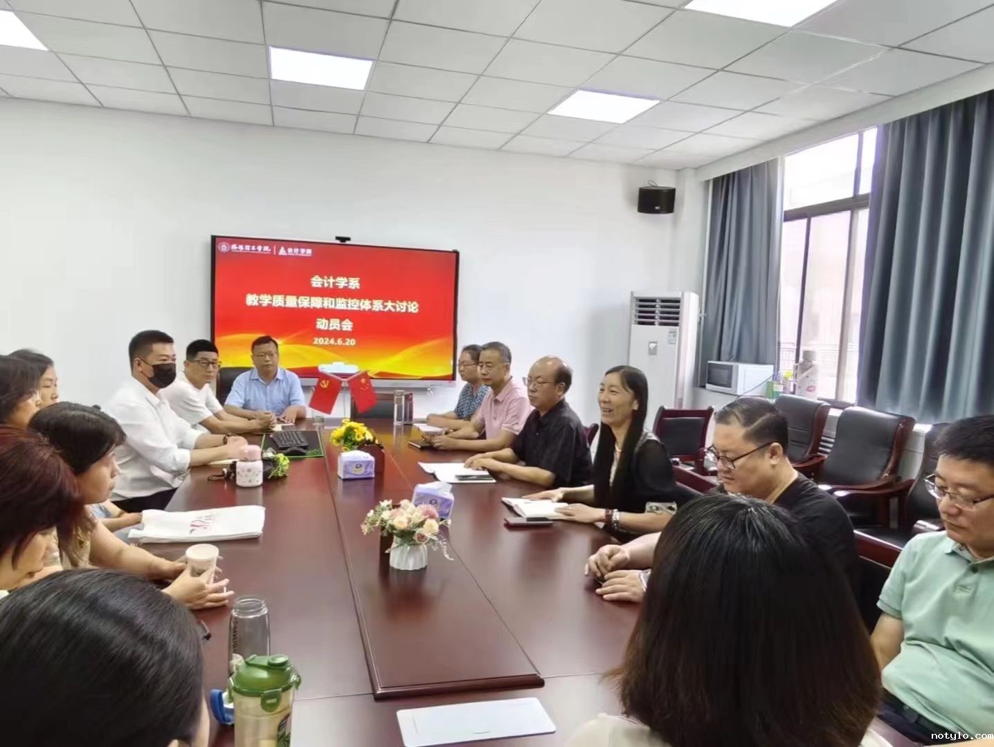 为进一步提升教育教学质量,会计学院近日开展了 “教学质量保障和监控体系大讨论”的专题讨论活动,此项活动也是本科教育教学审核评估(诊断)反馈问题整改工作的重要一环。本次活动旨在深入探讨和完善教学质量保障与监控机制,为提升教育教学水平和服务质量,迎接教育部本科教育教学审核评估奠定坚实基础。