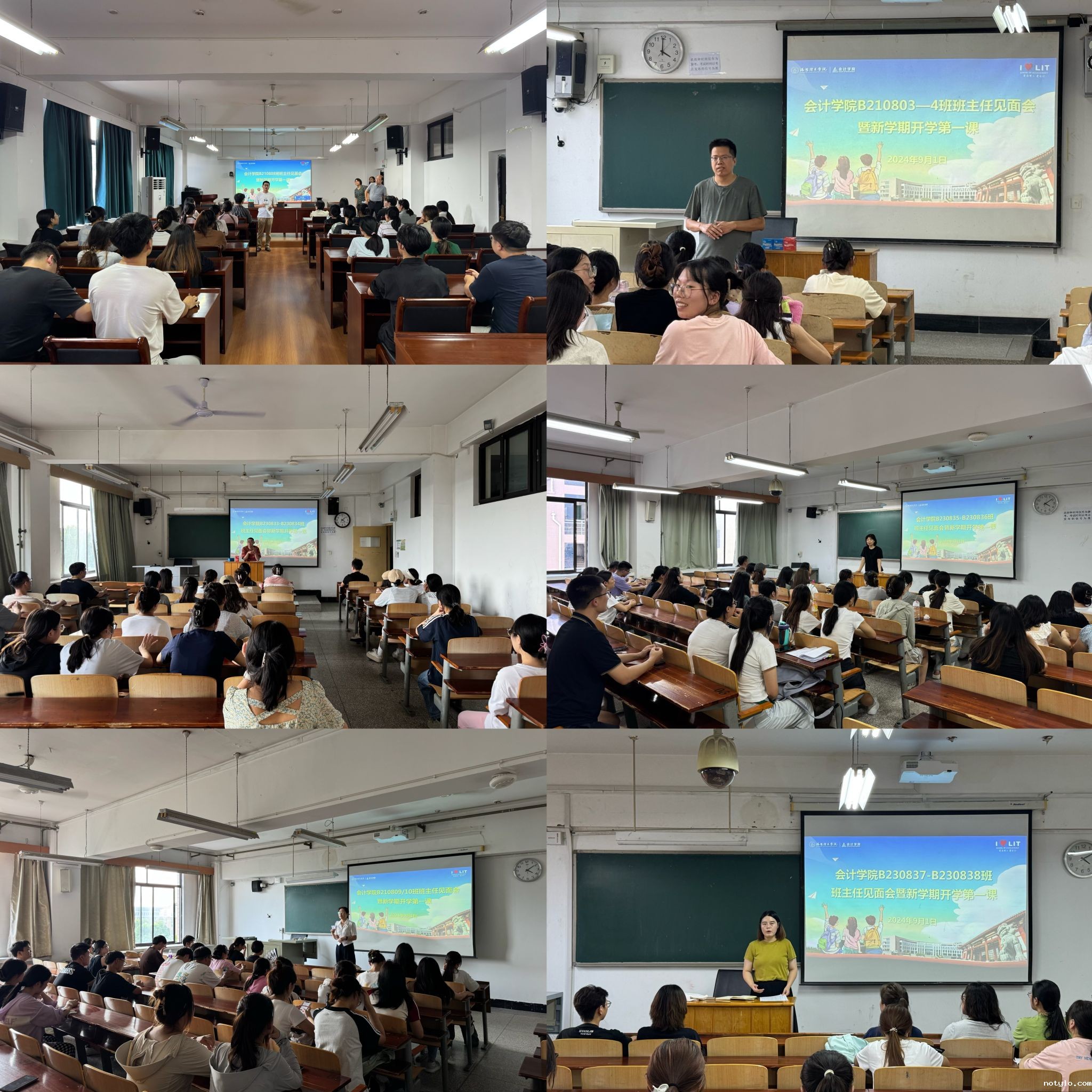 8月31号上午,会计学院召开全体教师大会,对班主任工作进行统一安排部署,强调了班主任工作是落实立德树人的根本任务,是加强学风建设的关键一环,是发挥三全育人工作的重要基础,党委书记赵燕昌,院长马腾,党委副书记卢莉丽,副院长吕玉辉、蔡洁等全体党政领导班子分别围绕班主任工作建设作了专题讲话。9月1日下午,各班分别在教学楼D按照指定分配的教室召开班主任见面会暨新学期开学第一课,全体领导班子共同深入各班级,与学生共同聆听“开学第一课”。