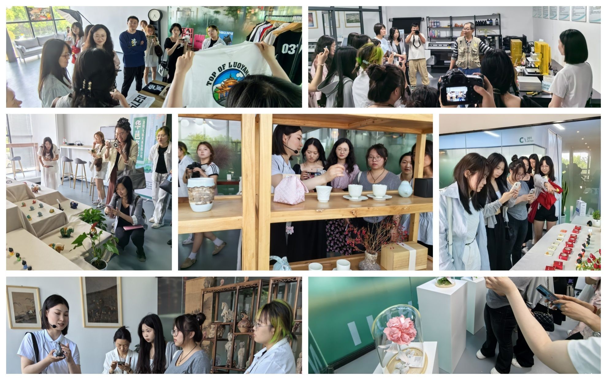 紧接着,一行人在上午9:45前往南山市集,通过实地考察,了解了南山市集的发展状况和文创工作室的运营模式。在南山市集的各家文创工作室和集合店,师生们体验了丰富多彩的文化创意产品,感受了洛阳本地文化的独特魅力以及创意传承。