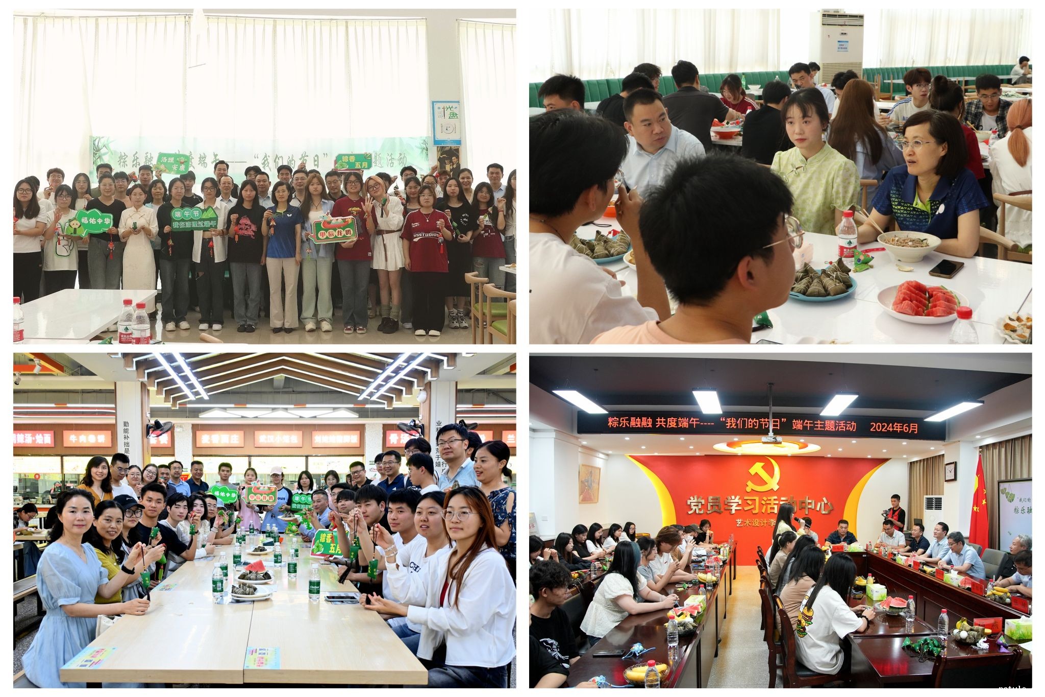 端午临中夏,时清日复长。为激发广大师生爱国主义情怀,坚定文化自信,过好“中华传统节日”,加强师生之间的情感交流,6月10日端午节之际,学校举办“粽乐融融 共度端午”我们的节日主题活动。校领导丁梧秀、曾涛、王新武出席活动,相关职能部门负责人,各二级学院党委书记及学生代表分别在王城、开元、九都三个校区参加活动。