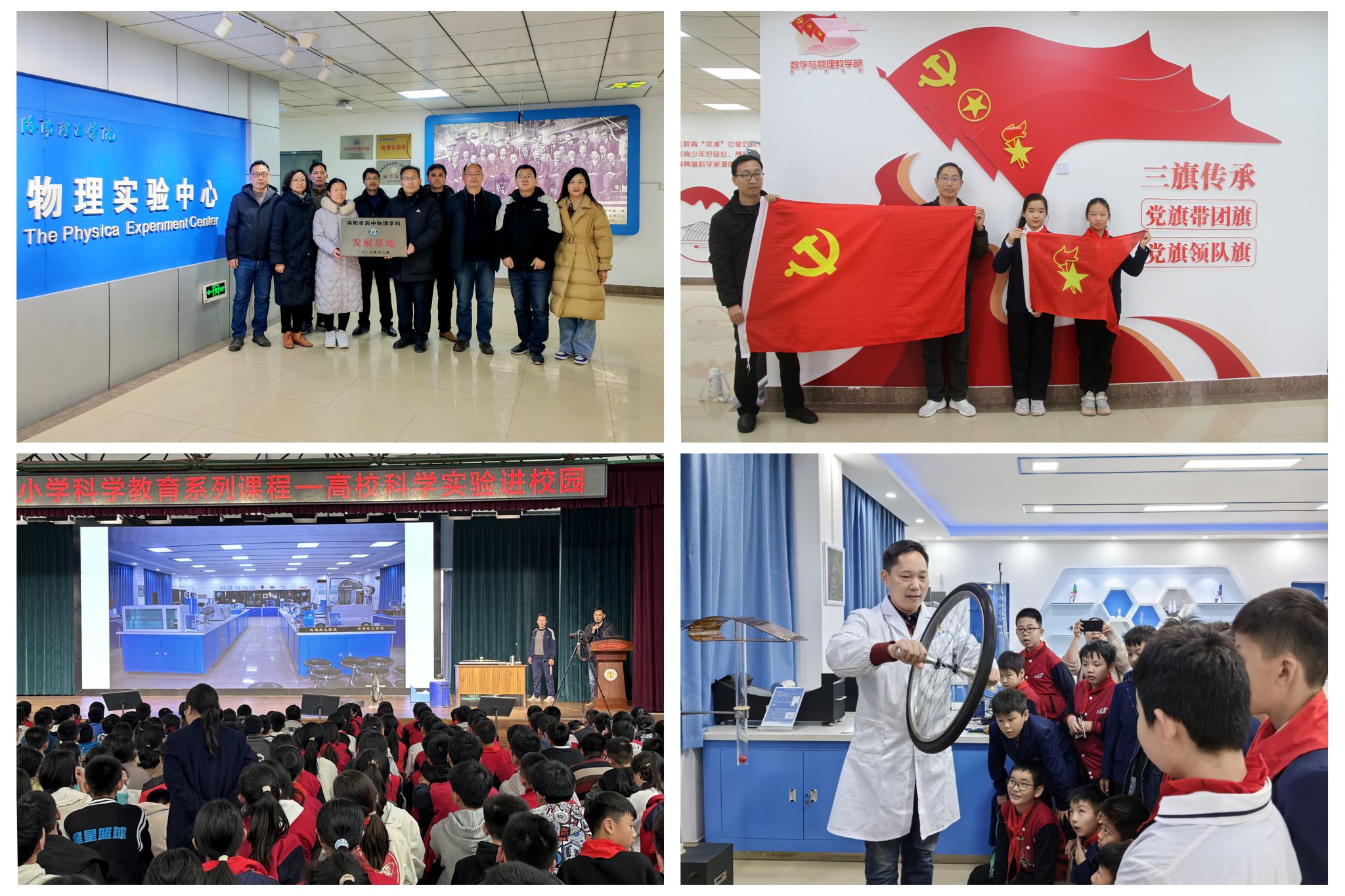 为充分发挥科普在培育科学精神、培养科技创新人才等方面的重要作用,营造全社会热爱科学、崇尚创新的浓厚氛围,2022年,党支部汇聚“红色动能”,将物理实验中心“物理创新与探索实验室”打造为支部党建阵地,面向全社会中小学生开展科普活动。同年,该党建阵地被评为“洛阳市科普基地”,又先后成为洛龙区第一实验小学科普基地、洛阳市高中物理学科发展基地。党支部书记苏剑峰受聘为洛阳市小学科技副校长。近年来,支部党员在课外及节假日期间,为洛一高、宜阳二中、东升三中、洛龙区实验小学等中小学在校学生,洛阳市义工协会帮扶家庭子女、本校教职工子女等开展科普服务,为洛三高物理学科提供理论和技术指导,服务人数近3000人。通过实施“党旗带团旗、党旗领队旗”,实现党旗、团旗、队旗的“三旗传承”,助力引导全社会形成讲科学、爱科学、学科学、用科学的良好氛围,为地方社会发展贡献科普力量。