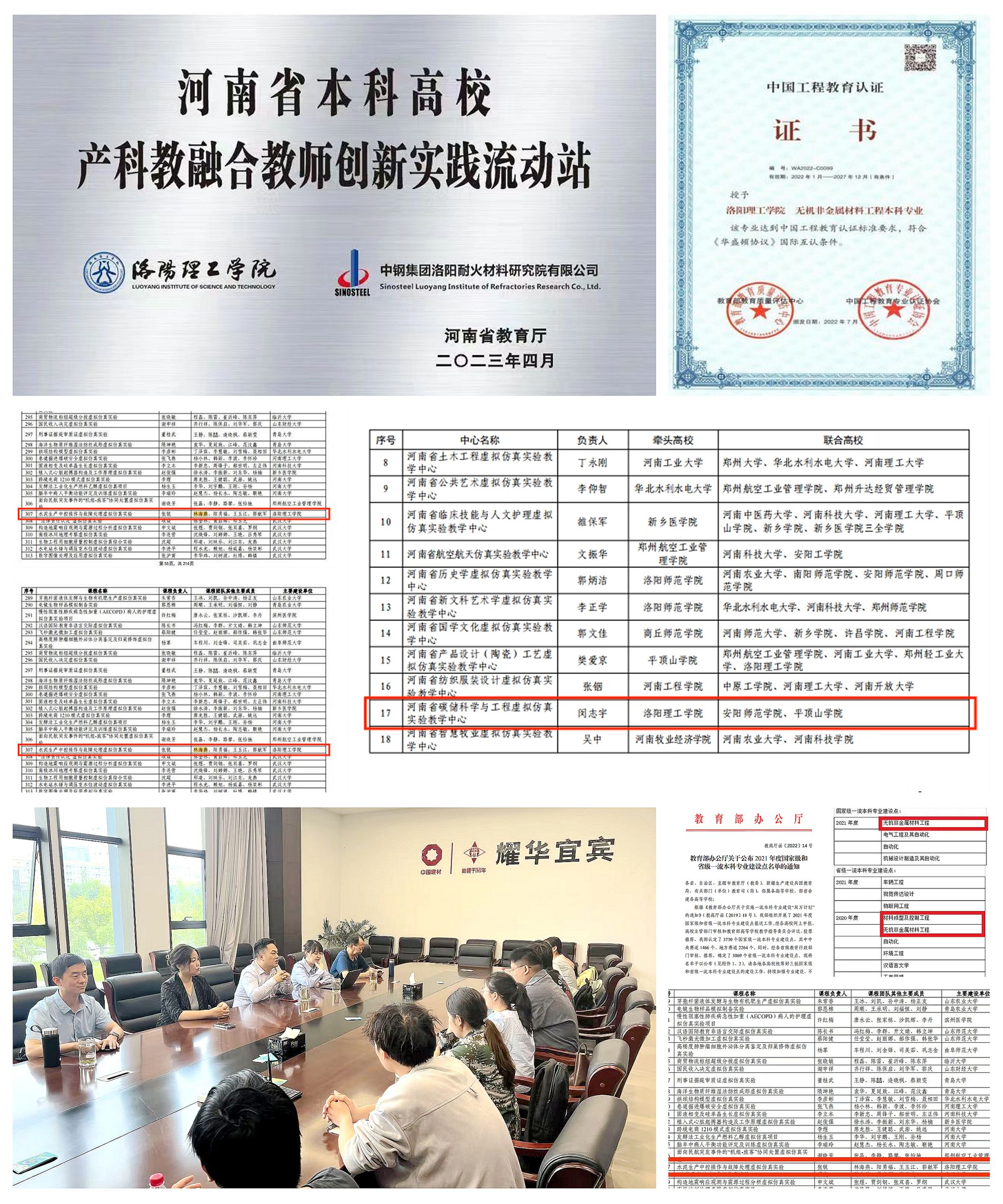 近两年,学院组织申报并获批河南省绿色建筑材料制造与智能装备重点实验室、“材料与化工”省级重点学科。优米直播app体育新工科(材料科学与工程)大学生校外实践教育基地获得省教育厅直接认定,获批河南省本科高校产科教融合教师创新实践流动站。获批1门国家级一流课程、1项本科高校2023年度产教融合研究重点项目。获批国家自然科学基金青年科学基金项目1项,省部级科研项目立项6项,其中河南省重点研发项目1项;获省部级以上科技奖励3项;建筑型材先进成型技术产业学院获批立项建设;完成“河南省碳储科学与工程虚拟仿真实验教学中心”和6个材料学院负责的河南省虚拟仿真项目的建设任务。承办或协办先进材料设计与功能优化暨第三届全国电磁功能材料会议等省级以上学术会议3场。2023年和2024年引入科研经费分别为1001.8万1702.73万元,引进经费总额均位居全校第一。与海螺集团、中国耀华玻璃集团、尧柏特种水泥集团、北京利尔公司等行业龙头企业深入合作,共建河南省智能化绿色建材产业学院,促进产学研深度融合。实现党建与业务工作在目标上的一致性、在任务上的统一性、在效果上的互促性,真正做到齐抓共管、互为促进的“一盘棋”。